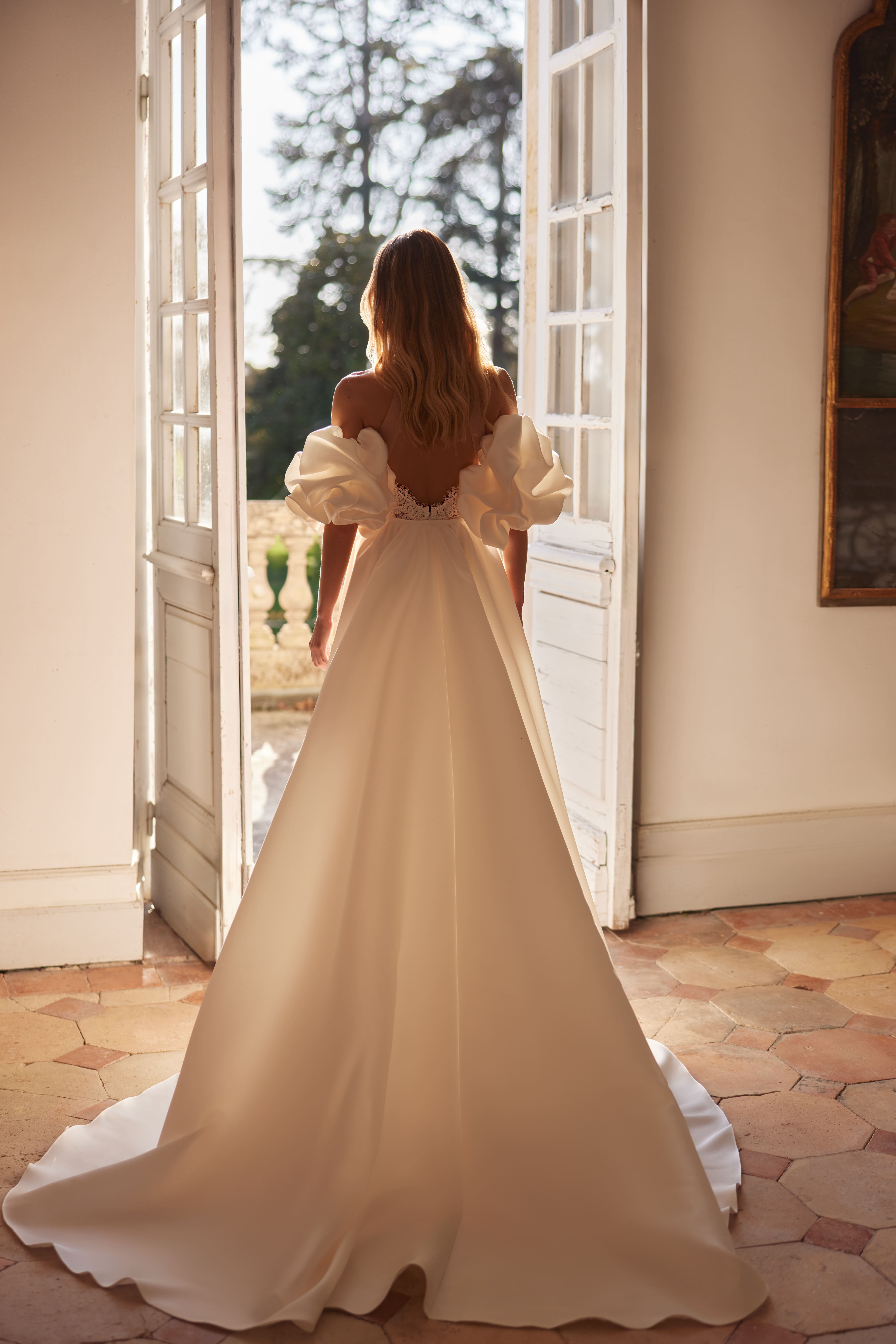Mówiono, że Jovienne powstała z inspiracji historią dwojga ludzi, którzy odnaleźli się przypadkiem - ona była spokojna i wrażliwa, on odważny i pełen światła. Spotkali się pewnego letniego wieczoru, gdy wiatr unosił zapach kwiatów, a świat wydawał się zatrzymany na moment. Ich rozmowy były długie i ciche, a spojrzenia mówiły więcej niż słowa. Gdy postanowili iść razem przez życie, panna młoda zapragnęła sukni, która opowie ich historię.